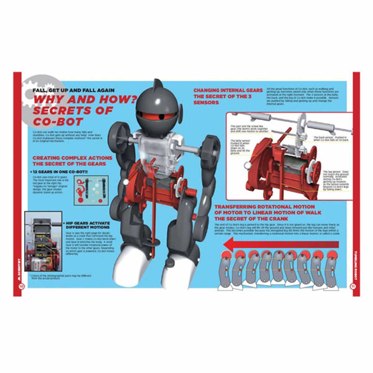 AMAZING AND AMUSING WALK! No matter how many falls and stumbles, Co-Bot gets up without any help! How does Co-Bot maneuver these complex motions? The secret is in its original mechanism. • Science guide included