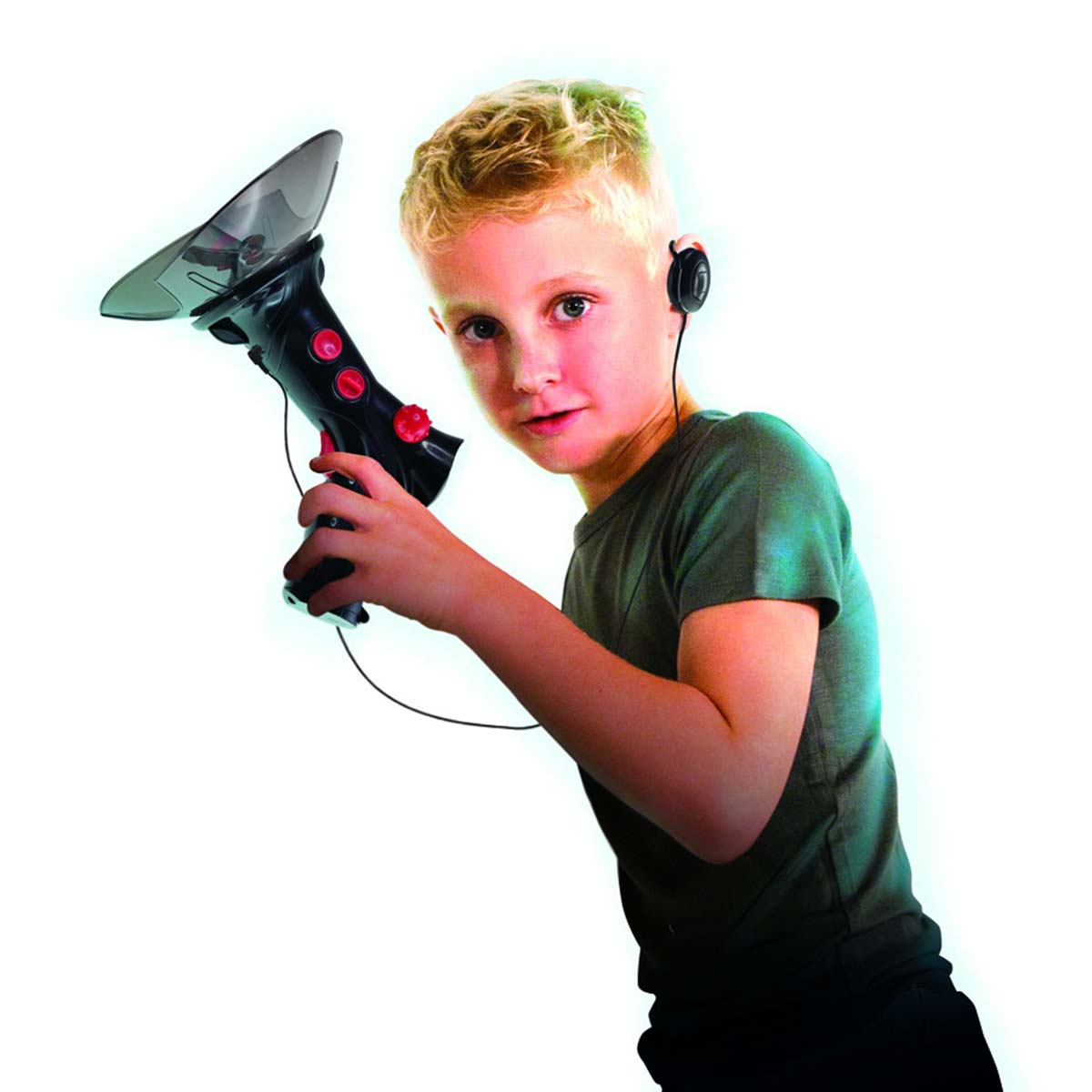 The built-in changing device converts the incoming sound ever covered for your spy mission! • Point spy voice changer in the direction of sound • Features with 3 different sounds: Kid, Animal & Adult • Sonic ear listening device